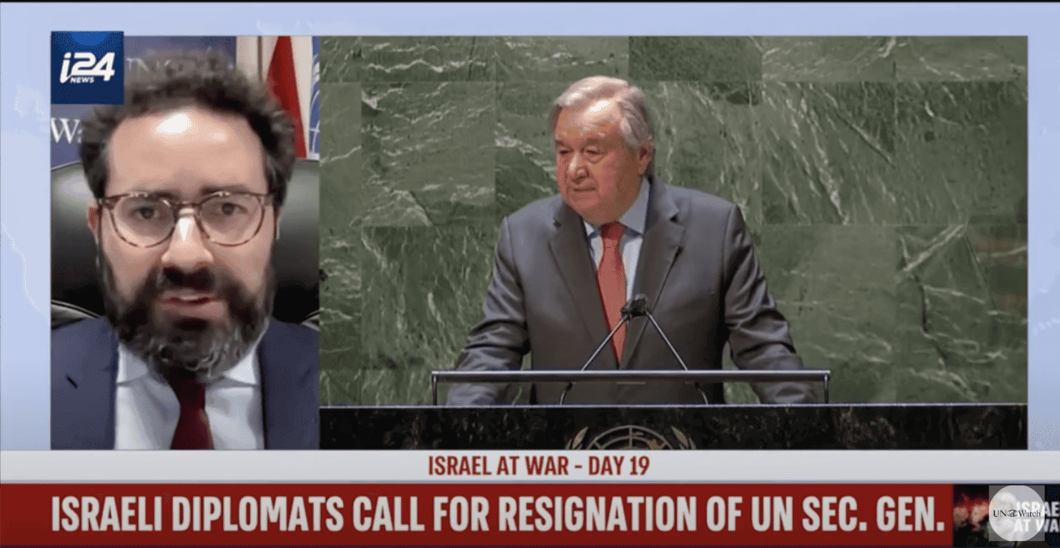 My interview with @laura_i24 @i24NEWS_EN: “For the U.N. chief Guterres to say that Hamas' mass murder, rape, mutilation & torture of more than 1300 men, women and children, young and old, ‘did not happen in a vacuum’—his attempt to contextualize and justify Hamas—is inexcusable.” pic.twitter.com/vKiZVkcnLZ