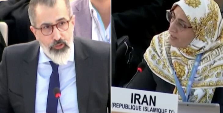 GENEVA, March 18, 2025 — For the second time in two days, Tehran’s representative in the UN’s top human rights body tried unsuccessfully to shut down Swedish MP Alireza Akhondi as he was exposing the Islamic regime’s brutality. Before he was interrupted, Akhondi asked, “how much more blood needs to be spilled before the world acts?”