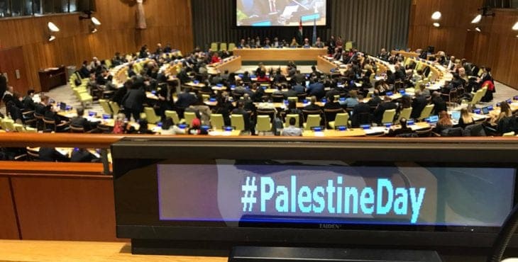 Photo from “International Day of Solidarity with the Palestinian People” at the U.N. headquarters in NYC, on November 29th, 2017. Smaller U.N. events were held in Geneva, Addis Ababa, and elsewhere.