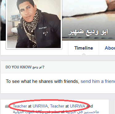 Abu Wadih Duheir, identifying himself on his Facebook page as a teacher at UNRWA,