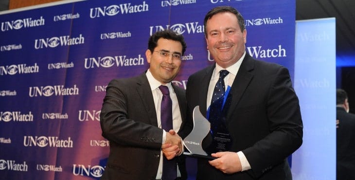 “UN Watch honors Minister Kenney for demonstrating the courage to lead in upholding the founding principles of the United Nations, and defending the true principles of human rights,” said UN Watch executive director Hillel Neuer.