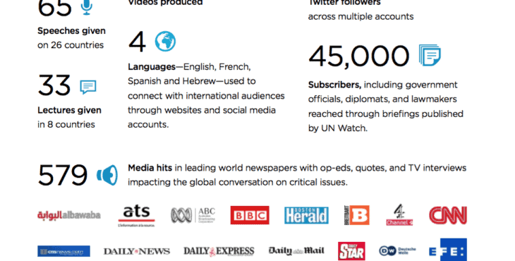 45,000 – #Subscribers, including government officials, diplomats, and lawmakers reached through briefings published by UN Watch.