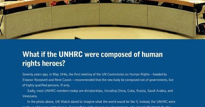 Dans cette photo, UN Watch a osé se représenter ce que le monde serait si, au lieu de ça, le CDH était composé de héros des droits de l’homme.