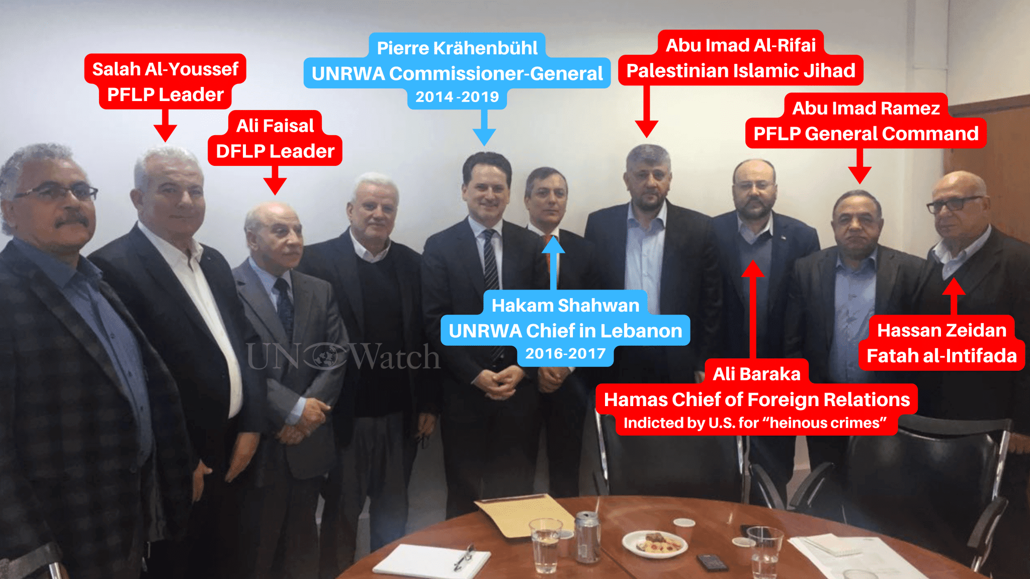 The head of UNRWA at the same gathering also met with Abu Imad al-Rifai, the leader of Palestinian Islamic Jihad in Lebanon, who boasted about sending a wave of suicide bombers to Baghdad in 2003 to kill American and British troops.
