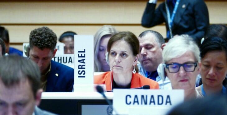 By a vote of 76 to 13, with 35 abstentions, the WHO assembly adopted a resolution submitted by the Syrian and Palestinian delegations requiring the WHO to hold the same debate at next year’s meeting, and to prepare another report on the “Health conditions in the occupied Palestinian territory, including east Jerusalem, and in the occupied Syrian Golan.”