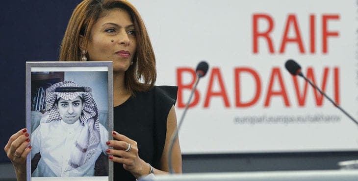 Raif Badawi is currently four years into a 10-year prison sentence, convicted for “insulting Islam” after he published a blog calling for a free society in Saudi Arabia.