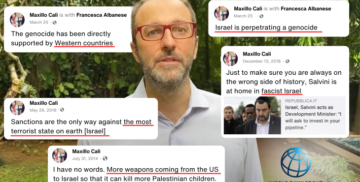 GENEVA, August 12, 2025 – UN Watch, the Geneva-based non-governmental organization that monitors the United Nations, has called on World Bank President Ajay Banga to fire their senior economist Massimiliano Cali, accusing him of grossly violating World Bank neutrality rules by publishing years of inflammatory social media posts inciting antisemitism, promoting jihadist terrorism, and attacking Israel and the United States. Click here for UN Watch Complaint Letter to World Bank.